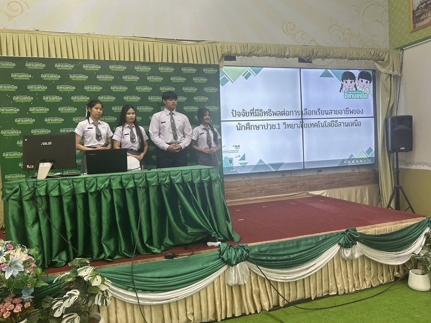 10/9/2568วันที่ 10 กันยายน 2568 ณ ห้องประชุมโรงสี วิทยาลัยเทคโนโลยีอีสานเหนือ ได้จัดกิจกรรม การสอบนำเสนอผลงานวิจัยของนักศึกษา ซึ่งเป็นกระบวนการสำคัญในการพัฒนาคุณภาพการศึกษา เพื่อให้นักศึกษาได้เรียนรู้และปฏิบัติจริงในด้านการวิจัย ตั้งแต่การเก็บข้อมูล การวิเคราะห์ ไปจนถึงการนำเสนออย่างเป็นระบบ กิจกรรมในครั้งนี้ได้รับเกียรติจาก นายเฉลิมพล วุฒินันท์ธนิศา ผู้อำนวยการวิทยาลัยเทคโนโลยีอีสานเหนือ ทำหน้าที่ประธานในพิธี พร้อมทั้งร่วมเป็น คณะกรรมการสอบงานวิจัย ให้คำแนะนำเชิงวิชาการอย่างใกล้ชิด เพื่อยกระดับคุณภาพของงานวิจัยนักศึกษาให้เป็นไปตามมาตรฐานทางวิชาการ บรรยากาศเป็นไปด้วยความเข้มข้นและสร้างสรรค์ นักศึกษาแต่ละกลุ่มแสดงความรู้ ความสามารถ และความมั่นใจในการนำเสนอผลงาน ตลอดจนการตอบคำถามของคณะกรรมการอย่างมืออาชีพ